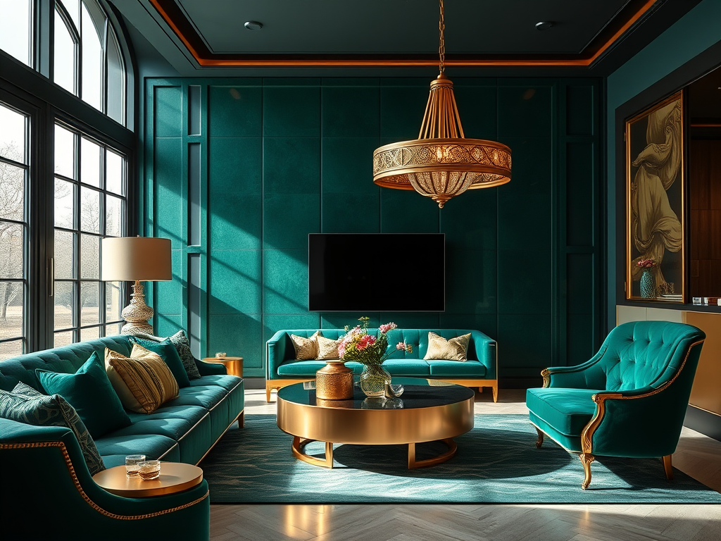 - Deep emerald with gold accents